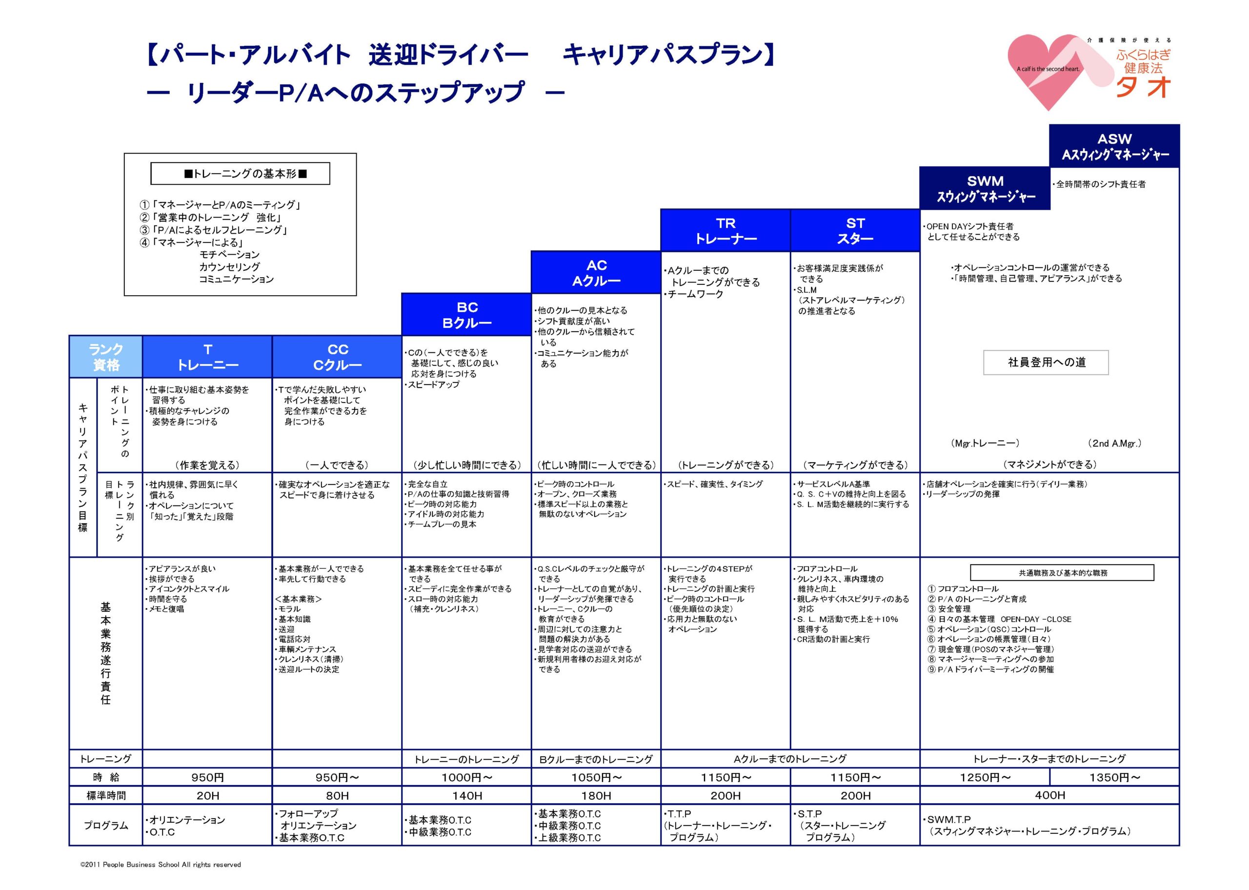 ★業務の種類別に研修制度あり応募方法 以下応募フォームもしくはお電話にて随時受付中 連絡先 TEL.0533-95-4415 担当 : 桑原 キャリアパスプラン